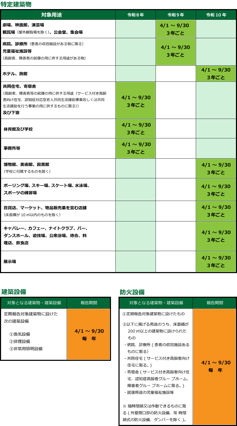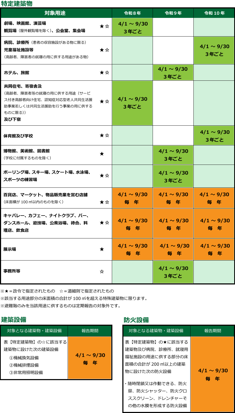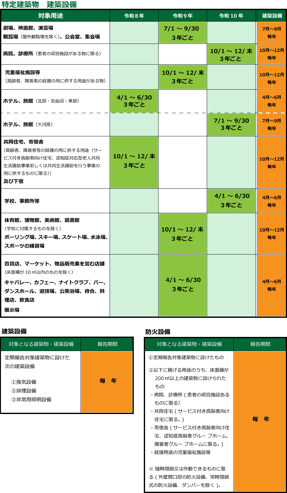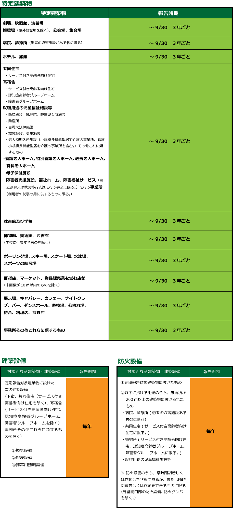 ・指定にあたっては、地域の実情(特に物件数の多い用途・規模のものなど)に応じて、定期的な報告を求めておく必要性が高いものが対象となっています。