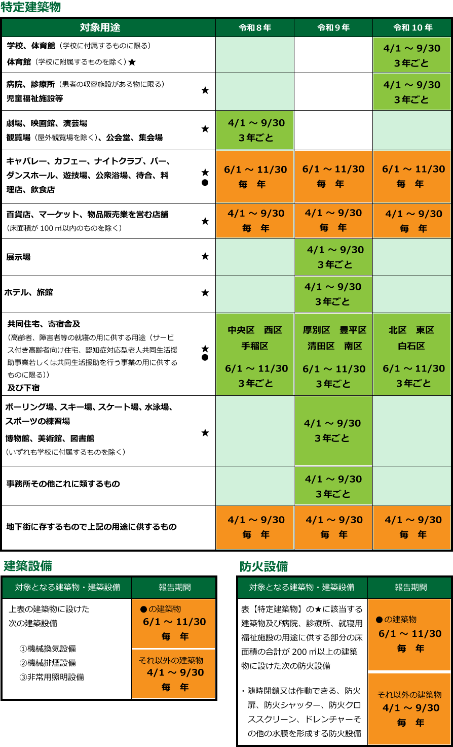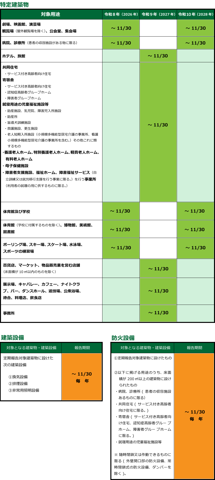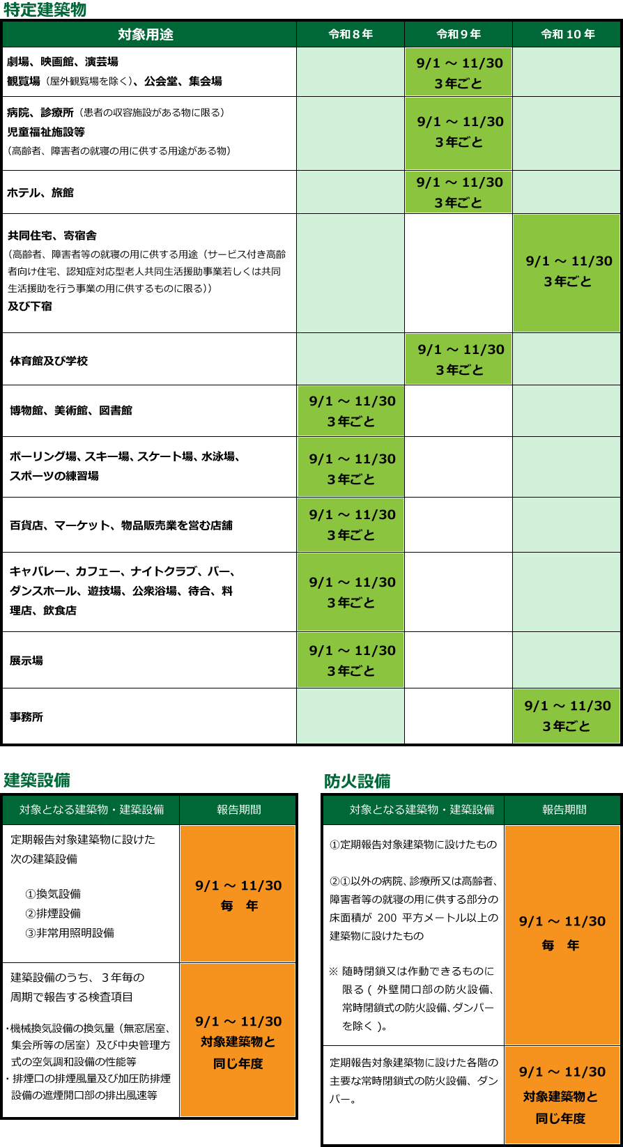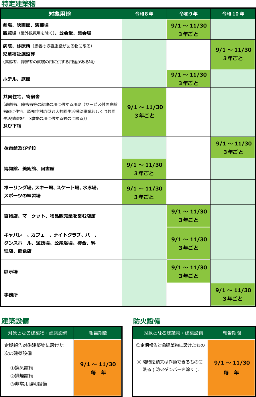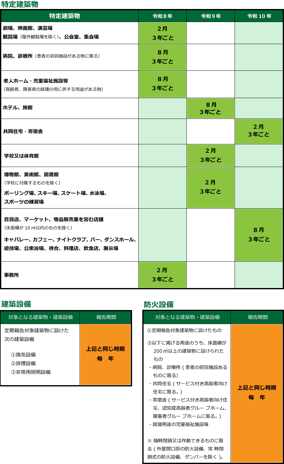 ・指定にあたっては、地域の実情(特に物件数の多い用途・規模のものなど)に応じて、定期的な報告を求めておく必要性が高いものが対象となっています。