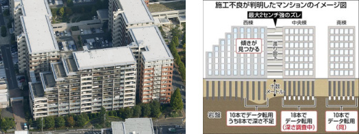 平成25年、杭の施工不良が原因とみられる傾斜問題が大きなニュースとなりました。 杭打ちデータの捏造や施工管理の甘さなど様々な原因が指摘されていますが、建築物の傾きの原因は必ずしも施工不良だけではありません。