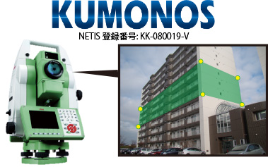 KUMONOS はノンプリズム光波測量器(トータルステーション)を用いた正確な測量結果を解析して建物の傾きを検出します。 データはデジタルで保存されるので長期にわたる保管が可能です。