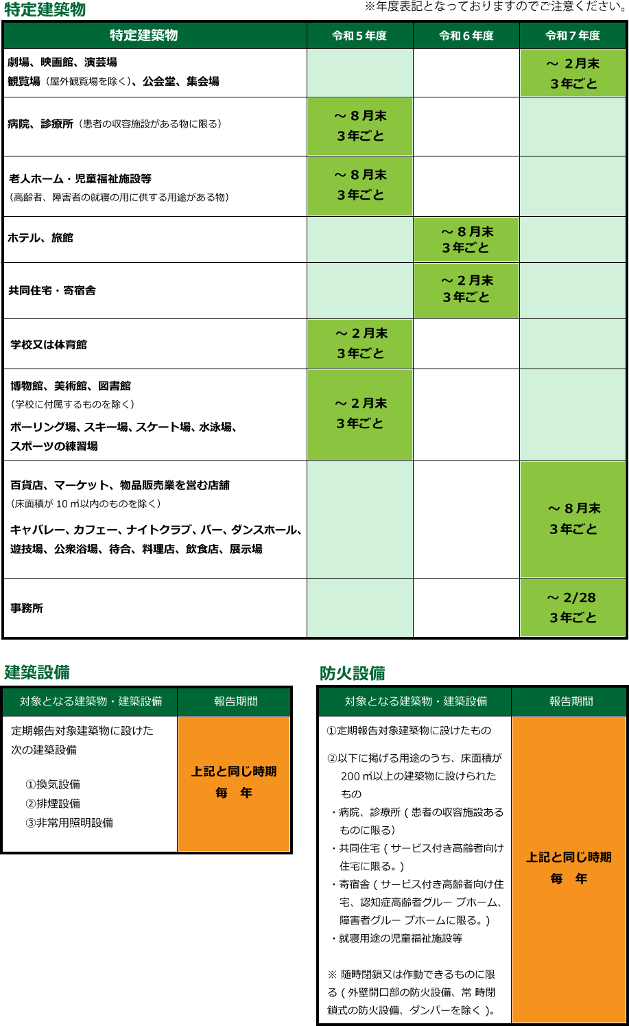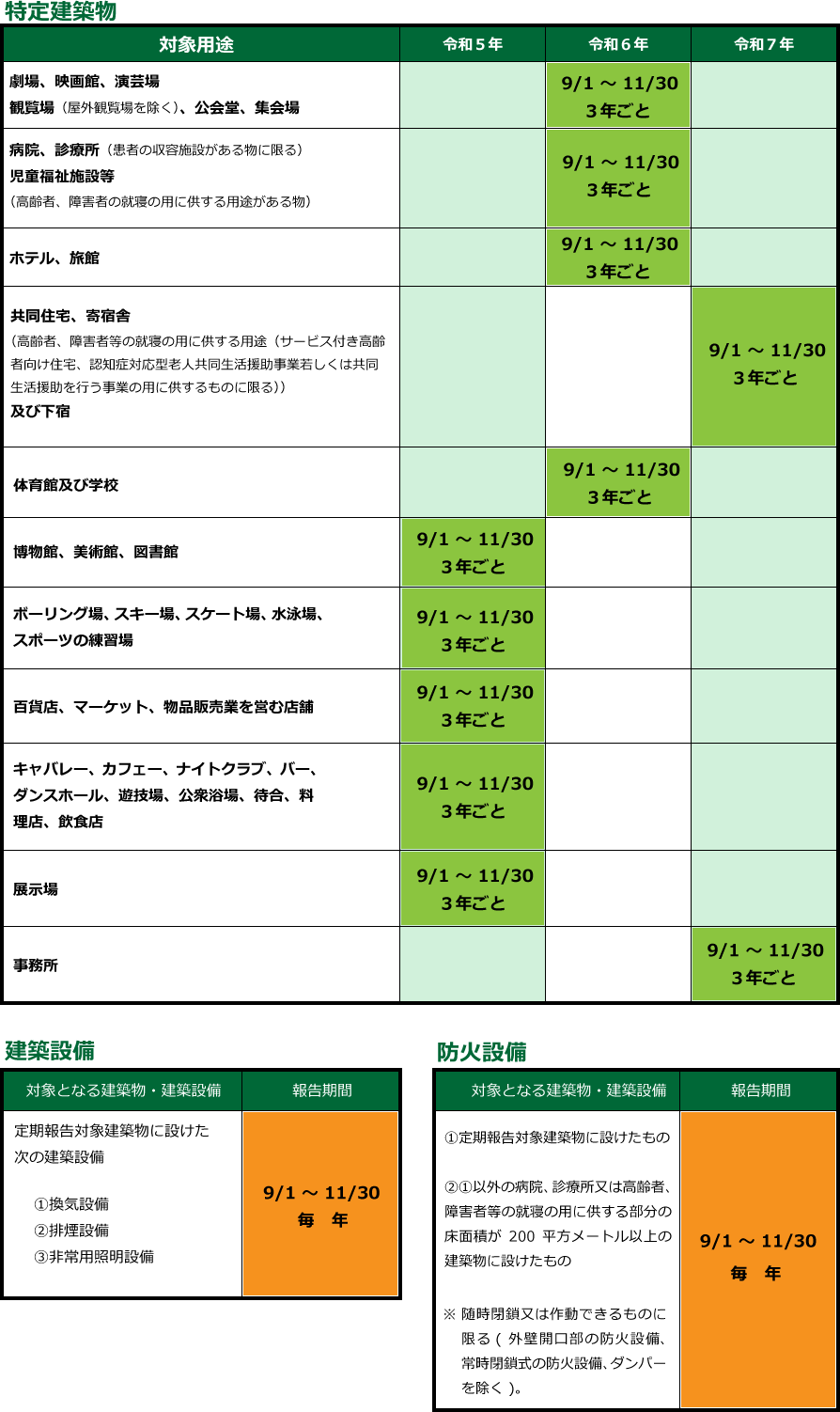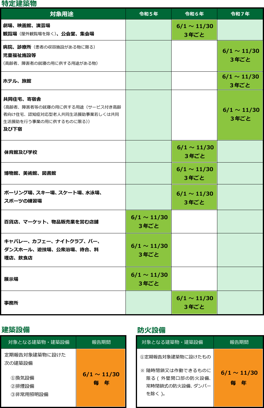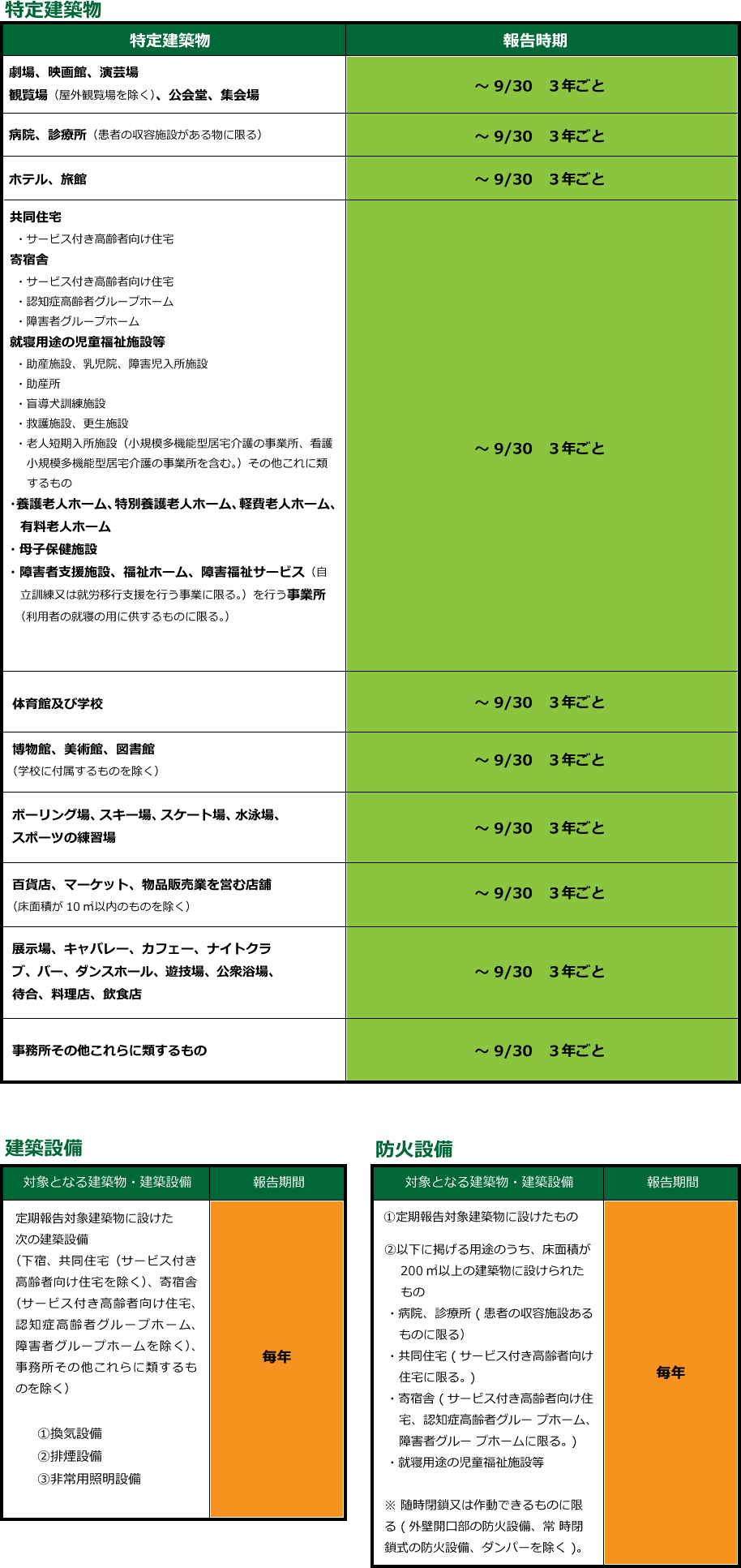 ・指定にあたっては、地域の実情(特に物件数の多い用途・規模のものなど)に応じて、定期的な報告を求めておく必要性が高いものが対象となっています。