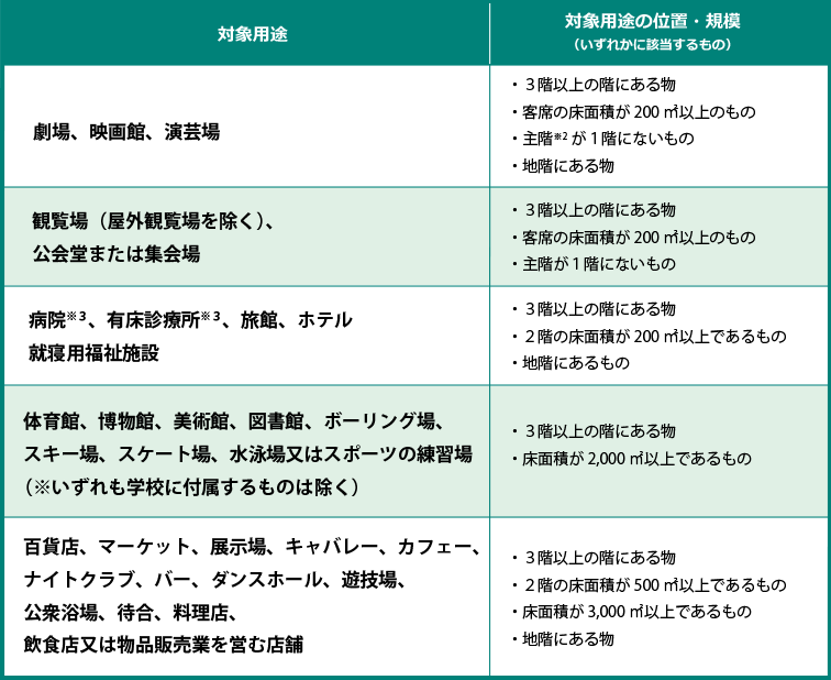 ・該当する用途部分が避難階※1のみにある物は対象外となります。