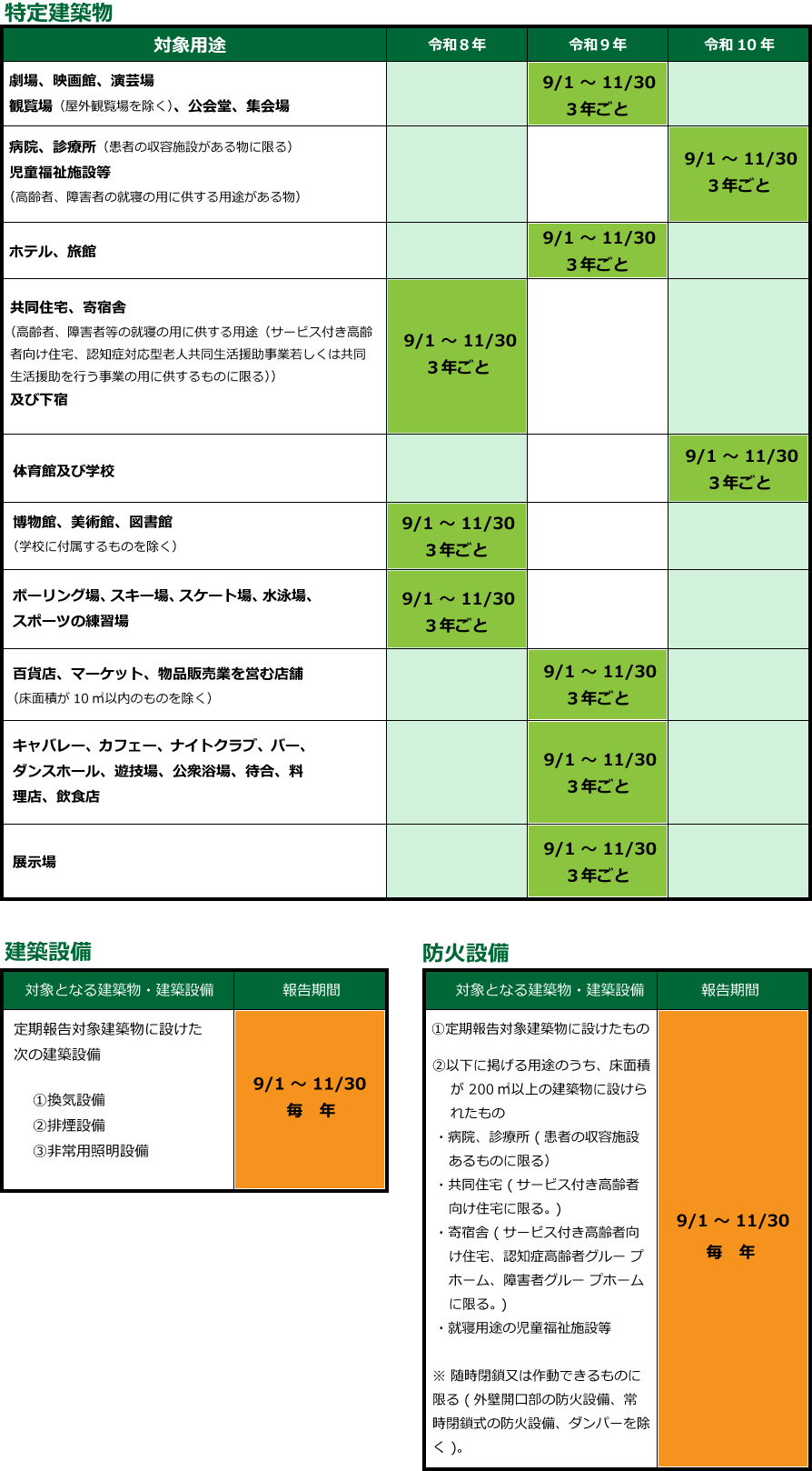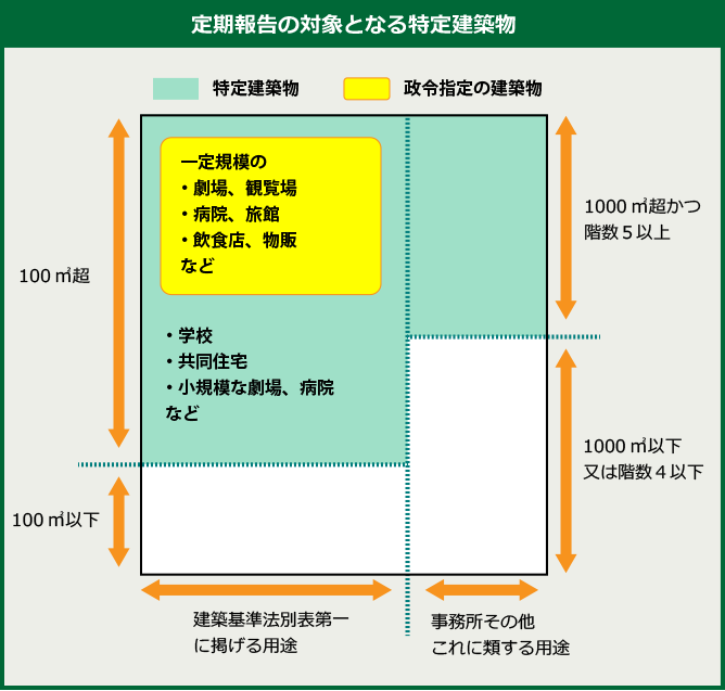 ・指定にあたっては、地域の実情(特に物件数の多い用途・規模のものなど)に応じて、定期的な報告を求めておく必要性が高いものが対象となっています。
