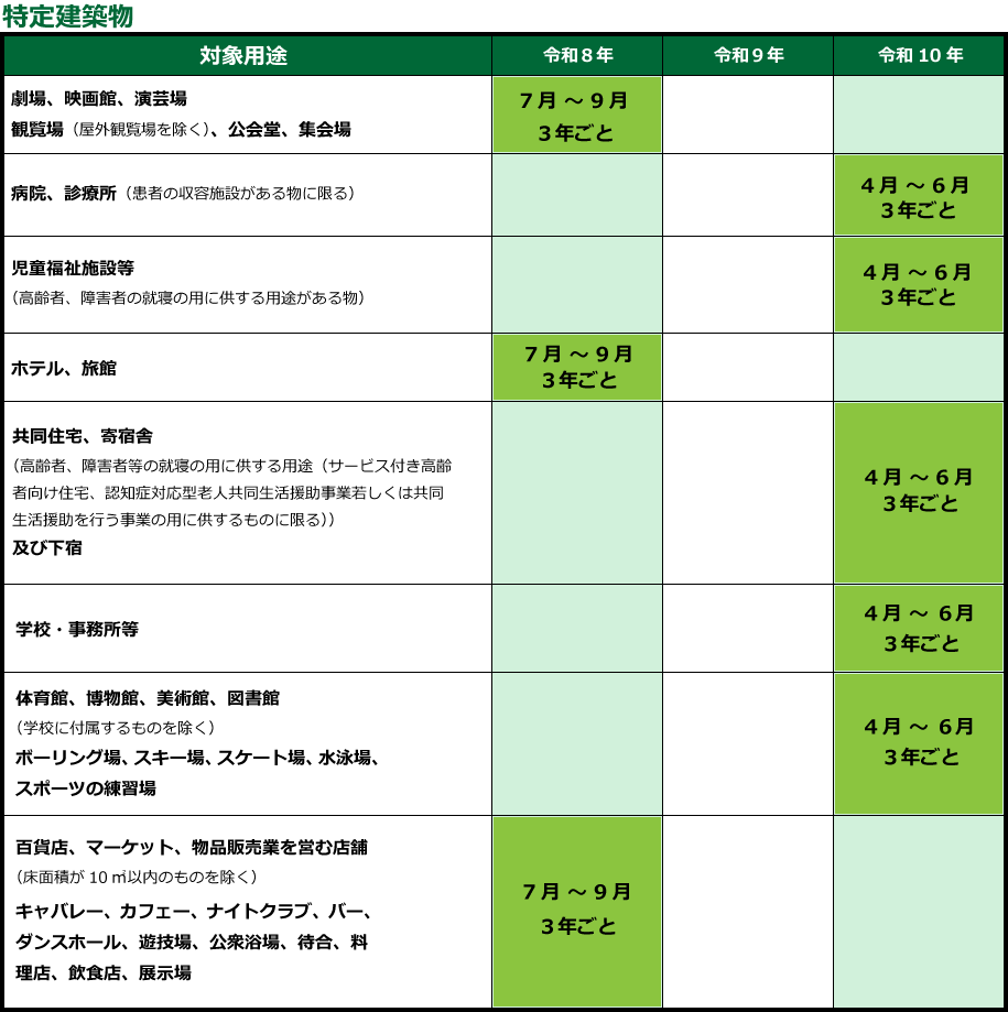 ・特定行政庁が指定する建築物の建築設備が対象です。