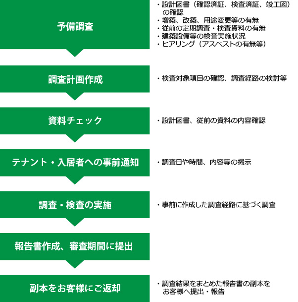 建築物の所有者や管理者は、定期的に有資格者による特殊建築物定期調査を実施し、その結果を担当行政庁に報告するように建築基準法において定められています。